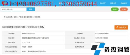 免責聲明:本網站(山東武鞍無縫鋼管廠www.97ks.net)刊載的“混改倒計時!安鋼集團110億掛牌轉讓!二十余鋼企有接手資格?”等均源于網絡,版權歸原作者所有,且僅代表原作者觀點,本文所載信息僅供參考。轉載僅為學習與交流之目的,如無意中侵犯您的合法權益,請及時聯系刪除。本網站刊登此篇文章并不意味著本站贊同其觀點或證實其內容的真實性,我們不對其科學性、嚴肅性等作任何形式的保證。如果侵犯了您的版權,請盡快聯系我們予以撤銷,謝謝合作!