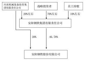 根據早前安鋼集團混改方案:先將安鋼集團100%股權評估后作價,出資至河南省國資委全資的河南機械裝備投資集團,同時將安陽鋼鐵20%股權無償劃轉到河南裝投集團;而后依托河南裝投集團在產權交易所公開掛牌并采取綜合評標方式確定一名戰(zhàn)略投資者,轉讓安鋼集團80%股權;戰(zhàn)略投資者對安鋼集團進行增資擴股,并實施員工持股等中長期激勵。