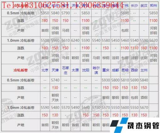 全國23個主要市場1.0mm 冷軋板卷平均價格5596元/噸,較上個交易日上調49元/噸。