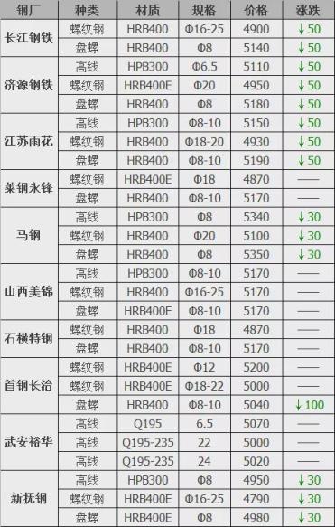 下調5家,占比55.7%,調價幅度20-100元/噸;