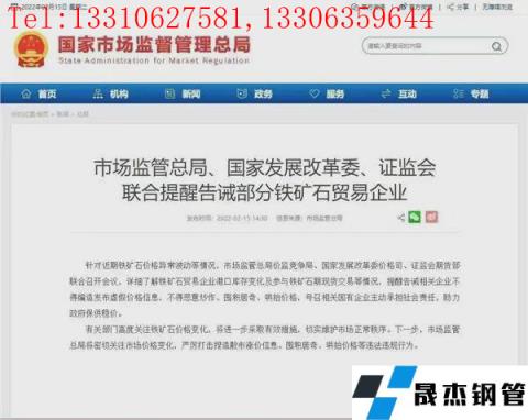 針對“瘋狂的石頭”,市場迫切需要降溫。2月15日,市場監管總局、國家發展改革委、證監會聯合發聲,提醒告誡部分鐵礦石貿易企業不得編造發布虛假價格信息,不得惡意炒作、囤積居奇、哄抬價格,號召相關國有企業主動承擔社會責任,助力政府保供穩價。