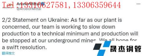 截止目前,沖突已導致鋼鐵和鐵礦石運輸所需的物流路線嚴重中斷。“來自烏克蘭的交貨肯定已經停止,”一位俄羅斯無縫鋼管廠家消息人士告訴標普全球普氏能源資訊。