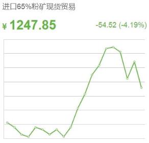 3月15日,進口鐵礦石價格普遍走低,進口65%粉礦現貨貿易價格跌54.52收于1247.85,進口65%粉礦到岸價格跌5.75收于176.82。