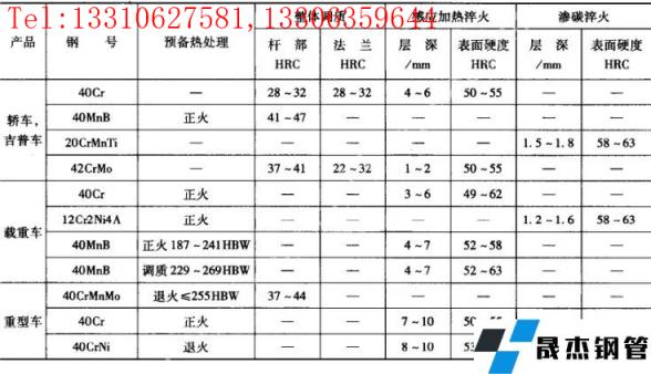 越野車的內、外半軸一般是變截面臺階軸,要求較高的沖擊韌度;過去往往采用低碳合金鋼滲碳處理,現多采用中碳合金鋼感應淬火。3