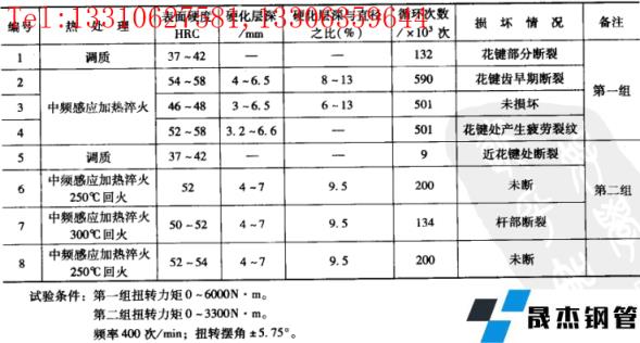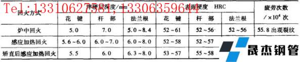 數據表明,感應回火的疲勞壽命較爐中回火為高。其原因是,感應快速加熱時,最表層首先瞬時產生馬氏體分解,使體積收縮處于相變超塑性階段,待整體回火完成后表層形成更大的壓應力,具有一個更理想的有利于提高疲勞強度的應力分布;而爐內加熱緩慢沒有這種條件。(3)半軸感應加熱表面淬火舉例,40MnB鋼制造的帶法蘭半軸的表面淬火工藝技術要求見表8