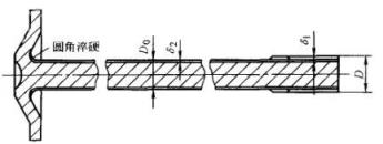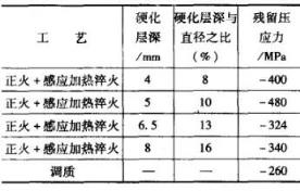 列出了直徑為50mm的帶法蘭半軸感應加熱淬火后花鍵尾根部位的殘留壓應力。通常,感應加熱淬火硬化層深度可以根據半軸桿部直徑的大小和產品設計結構形狀來確定。對輕型載重車和小轎車的法蘭盤式半軸(桿部直徑在50mm以下)淬硬層深度可按下列要求確定(參閱圖4)。