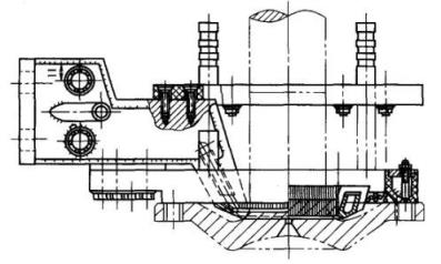 ▲圖6半軸整體淬火感應器半軸連續淬火存在效率低,不便于機械化和自動化的缺點,而且連續淬火使半軸靠近光桿的花鍵區常常產生軟帶,強度較低,使用中往往在花鍵尾部斷裂。這是由于感應器移到該處時,磁感應線強烈地偏移到未失去鐵磁性的光桿部位所引起的。采用矩形感應器進行整體一次感應加熱時,其有效圈電流方向平行于半軸軸線線,并產生垂直于工件軸線的橫向磁場,所以半軸的軸向幾何尺寸變化(如花鍵一光桿、多階軸及臺肩軸等)時,不會引起磁感應線的偏移。所以工件表面的感應電流是均勻的,半軸表面可以獲得均勻加熱。圖7