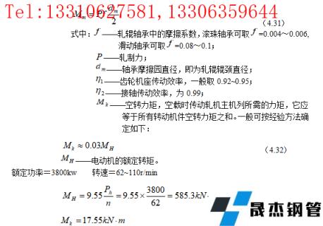 電機所需力矩除了軋制力矩外,還有摩擦力矩,空轉力矩,動力矩。這些力矩的計算方法與一般縱軋相同。