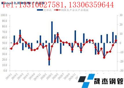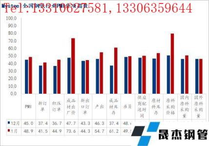 1月份,全國鋼鐵行業(yè)無縫厚壁鋼管廠家產(chǎn)出指數(shù)較12月份回升8.4個百分點,終值54.7。具體來看,進入1月份,各地對長流程無縫厚壁鋼管廠家限產(chǎn)政策明顯放松,各地高爐陸續(xù)復(fù)產(chǎn),粗鋼產(chǎn)量明顯回升。至后半月,隨著春節(jié)假期臨近,短流程無縫厚壁鋼管廠家陸續(xù)放假,無縫厚壁鋼管廠家產(chǎn)量小幅回落。整體而言,1月份國內(nèi)鋼鐵產(chǎn)出明顯回升。