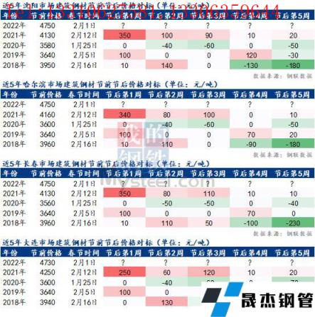小編匯總了近5年春節前后東北建筑厚壁無縫鋼管市場價格變化情況,除2020年受公共衛生事件影響平穩運行外,其余年份節后首周多數都是“開門紅”狀態,在第4-5周基本會出現沖高后回調的情況。具體情況如下: