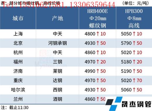 ◎重慶:8日早盤建材市場價格繼續(xù)上漲,現(xiàn)達(dá)鋼螺4920、盤5020,永航螺4900、盤4950,瀘鋼螺4900、盤4950。(單位:元/噸)