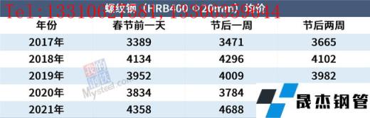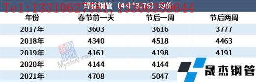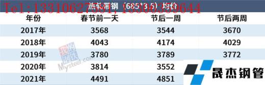 小編匯總近5年春節后兩周全國主要城市13大品種厚壁無縫鋼管均價走勢,以供參考。