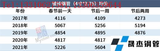 免責聲明:本網站(山東武鞍無縫鋼管廠www.97ks.net)刊載的“近5年春節前后全國鋼材_無縫鋼管市場走勢”等均源于網絡,版權歸原作者所有,且僅代表原作者觀點,本文所載信息僅供參考。轉載僅為學習與交流之目的,如無意中侵犯您的合法權益,請及時聯系刪除。本網站刊登此篇文章并不意味著本站贊同其觀點或證實其內容的真實性,我們不對其科學性、嚴肅性等作任何形式的保證。如果侵犯了您的版權,請盡快聯系我們予以撤銷,謝謝合作!