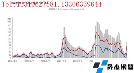 本周汾渭區(qū)域樣本內(nèi)13家無縫厚壁鋼管廠家廠內(nèi)建材總庫存為108.3萬噸,周環(huán)比增加6.2萬噸。其中山西區(qū)域廠內(nèi)庫存80.7萬噸,周環(huán)比增加9萬噸;陜西區(qū)域廠內(nèi)庫存27.6萬噸,周環(huán)比減少2.2萬噸。