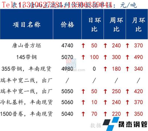 今日唐山管帶價(jià)格趨穩(wěn)運(yùn)行,其中355帶鋼穩(wěn),145帶鋼較昨日漲100元/噸,焊管、鍍鋅管價(jià)格穩(wěn)。355帶鋼市場(chǎng)價(jià)格先漲后跌,較昨日整體趨穩(wěn)運(yùn)行。受今日黑色系期貨沖高回落影響,市場(chǎng)心態(tài)發(fā)生變化,對(duì)價(jià)格偏觀望,謹(jǐn)慎操作為主,成交清淡。