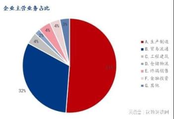 參與調研企業中,主營業務為生產制造與貿易流通占比最大,分別為51%和32%,合計占比83%。