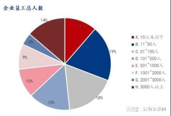 員工在100人及以下企業占比48.3%,100-1000人占比24.83%,1000人以上占比26.83%。