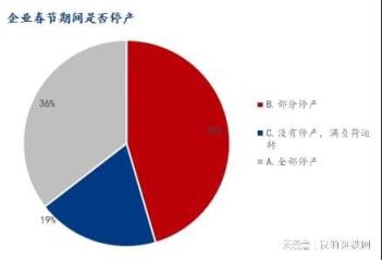 1、今年春節期間,煤炭行業451家調研樣本企業中,部分停產占比45.45%,沒有停產,滿負荷運轉占比19.07%,全部停產占比35.48%。已經全部復工占比55.43%,已經部分復工占比33.92%,尚未復工占比10.64%。企業復工復產節奏較快。