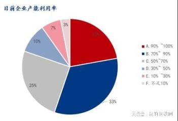 產能利用率在50%以上的占比80.27%,在50%以下的占比19.73%,企業整體產能利用率較高。