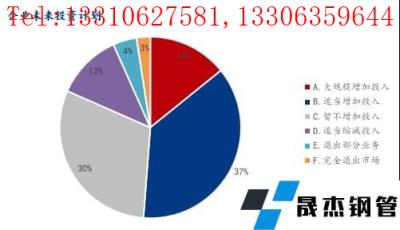 對于企業未來投資計劃,參與調研企業中表示大規模增加投入占比14.19%,適當增加投入占比37.03%,暫不增加投入占比30.38%,適當縮減投入占比11.75%,退出部分業務占比4.21%,完全退出市場占比2.44%。