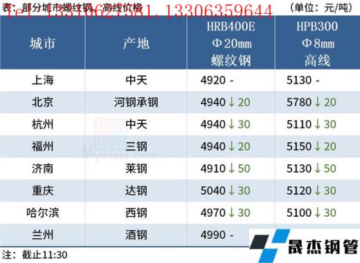 ◎濟南:15日早盤建材市場價格跌50。萊鋼螺紋4840,永鋒、石橫螺紋4830,永鋒、石橫盤螺5130。(單位:元/噸)
