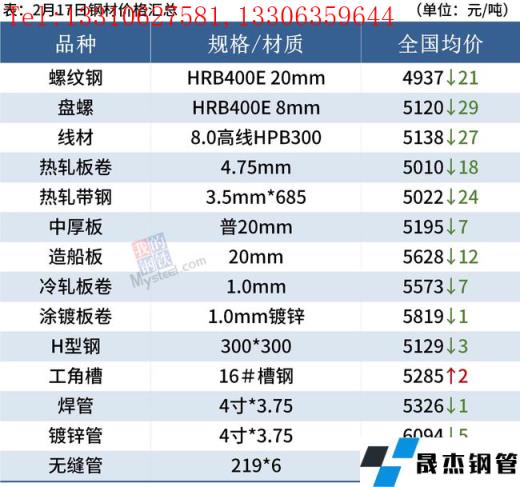 建筑厚壁無縫鋼管:2月17日,全國31個主要城市20mm三級抗震螺紋鋼均價4937元/噸,較上個交易日下跌21元/噸。本周螺紋鋼產(chǎn)量邊際回升,廠庫下降,但社庫增幅明顯,不過本周表觀消費(fèi)量繼續(xù)回升,說明需求端邊際向好。短期來看,由于當(dāng)前需求并未完全釋放,短期市場運(yùn)行邏輯仍然是情緒面驅(qū)動,原料承壓對于現(xiàn)貨仍有一定拖累。因此預(yù)計(jì)18日國內(nèi)建筑厚壁無縫鋼管價格或?qū)⒗^續(xù)趨弱。