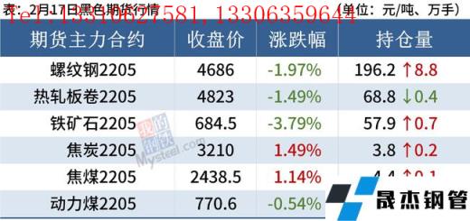 冷軋板卷:2月17日,全國24個主要城市1.0mm冷卷均價5573元/噸,較上個交易日下跌7元/噸。今日黑色系期貨盤面整體震蕩偏弱運(yùn)行,市場心態(tài)下滑,近兩日現(xiàn)貨市場價格均陸續(xù)回落,再加上市場“買漲不買跌”的情緒居高不下,今日整體成交一般。庫存方面,據(jù)不完全統(tǒng)計(jì),現(xiàn)冷軋無縫厚壁鋼管廠家?guī)齑?0.94萬噸,周環(huán)比減少2.77萬噸,社會庫存142.03萬噸,周環(huán)比增加2.86萬噸,周消費(fèi)量80.71萬噸,環(huán)比增加13.02萬噸。綜合來看,故預(yù)計(jì)18日國內(nèi)冷軋板卷價格或?qū)⒎€(wěn)中偏弱運(yùn)行。