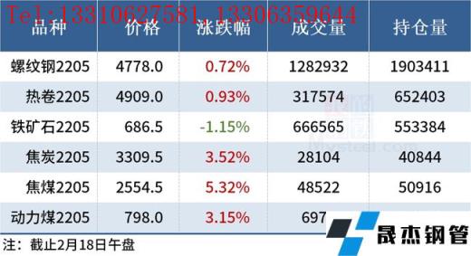 免責聲明:本網站(山東武鞍無縫鋼管廠www.97ks.net)刊載的“2022年02月18日午報:鋼價小幅下跌,黑色期貨普遍上漲”等均源于網絡,版權歸原作者所有,且僅代表原作者觀點,本文所載信息僅供參考。轉載僅為學習與交流之目的,如無意中侵犯您的合法權益,請及時聯系刪除。本網站刊登此篇文章并不意味著本站贊同其觀點或證實其內容的真實性,我們不對其科學性、嚴肅性等作任何形式的保證。如果侵犯了您的版權,請盡快聯系我們予以撤銷,謝謝合作!