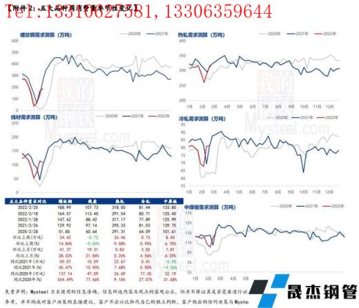 本周五大品種供應均有明顯回升,分品種來看,建材增量集中于短流程生產(chǎn)企業(yè),原因在于上周元宵節(jié)過后短流程復產(chǎn)比例提升,增量區(qū)域集中于華東、華南和西南;板材增量集中于長流程生產(chǎn)企業(yè),原因在于冬奧會結束,部分板材企業(yè)鐵水逐步恢復,促使軋材增量。綜合來看,原料趨弱運行導致成品材成本下移,擴寬企業(yè)利潤空間,一定程度上提振了企業(yè)復產(chǎn)積極性。預計后期供應仍有一定增量空間,但受限于冬奧會后還有殘奧會,因此空間相對有限。