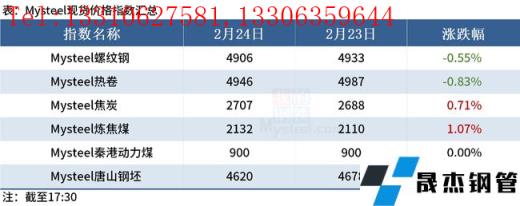 ◎ 2月24日統(tǒng)計新口徑114家無縫厚壁鋼管廠家進口燒結粉總庫存3317.49萬噸,燒結粉總日耗95.47萬噸。原口徑64家無縫厚壁鋼管廠家進口燒結粉總庫存1568.97萬噸,燒結粉總日耗47.32萬噸,庫存消費比33,燒結礦中平均使用進口礦配比86.39%,無縫厚壁鋼管廠家不含稅平均鐵水成本3107元/噸。詳情>>