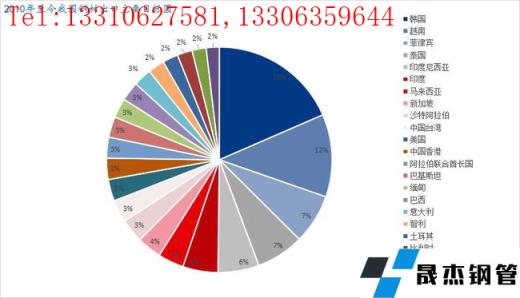 從我國(guó)出口目標(biāo)國(guó)構(gòu)成情況來(lái)看,我國(guó)厚壁無(wú)縫鋼管主要輸出地位韓國(guó)、越南、菲律賓、泰國(guó)等地,其中韓國(guó)及越南由于當(dāng)?shù)丶庸S較多,除當(dāng)?shù)匦〔糠窒耐猓D(zhuǎn)口貿(mào)易占大部分進(jìn)口量。因此韓國(guó)、越南、菲律賓等地進(jìn)口品種基本以板材為主。雖然近幾年進(jìn)口量稍許有所減少,但從量級(jí)上來(lái)看仍為中國(guó)最大買(mǎi)家。