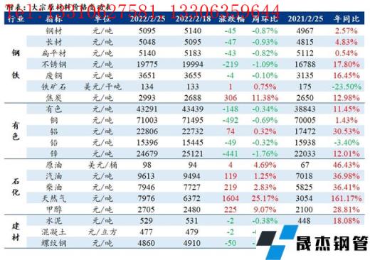 免責聲明:本網站(山東武鞍無縫鋼管廠www.97ks.net)刊載的“周報:大宗原材料價格周報(2.21-2.25)”等均源于網絡,版權歸原作者所有,且僅代表原作者觀點,本文所載信息僅供參考。轉載僅為學習與交流之目的,如無意中侵犯您的合法權益,請及時聯系刪除。本網站刊登此篇文章并不意味著本站贊同其觀點或證實其內容的真實性,我們不對其科學性、嚴肅性等作任何形式的保證。如果侵犯了您的版權,請盡快聯系我們予以撤銷,謝謝合作!