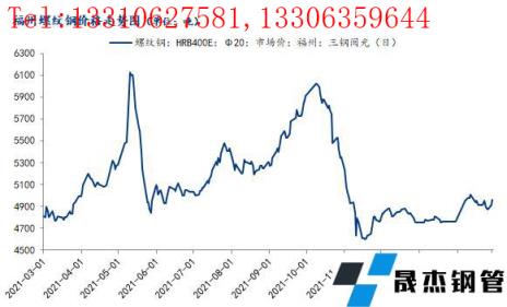 從主流無縫厚壁鋼管廠家結算價來看,本月明顯上漲。三鋼2022年02月16日起結算價執行螺紋鋼4950元/噸,高線5100元/噸,盤螺5200元/噸。目前結算價仍明顯高于市場成交價。
