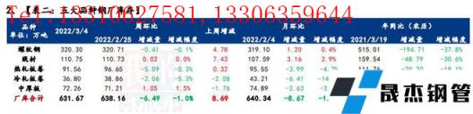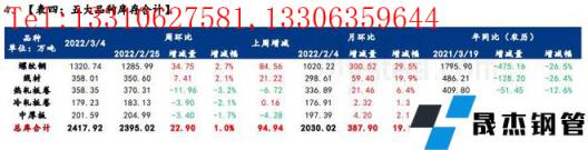 庫存方面,五大品種厚壁無縫鋼管總庫存春節(jié)后連續(xù)累增5周,環(huán)比上周增加22.9萬噸,增幅1%。分品種看,建材庫存增加42.16萬噸,增幅為2.6%;板材庫存減少19.26萬噸,降幅2.5%;分指標(biāo)看,五大品種無縫厚壁鋼管廠家?guī)齑姝h(huán)比減少6.49萬噸,降幅1%;五大品種社會庫存環(huán)比增加29.39萬噸,增幅1.7%。