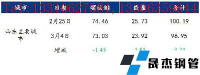 表1:山東市場建筑厚壁無縫鋼管社會庫存變化情況