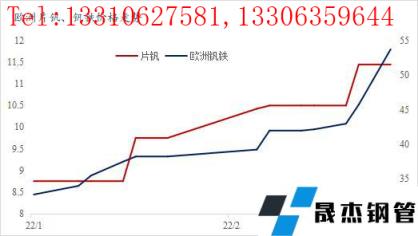 元月開始,海外主要釩生產基地巴西Largo生產不順,釩產品國際供應減少,導致歐洲釩產品價格一路上行。從元月5日至元月26日,歐洲片釩由8.75美元/磅上漲至9.75美元/磅;歐洲80釩鐵由32.75美元/公斤上漲至38.25美元/公斤,價格上漲了16.7%。