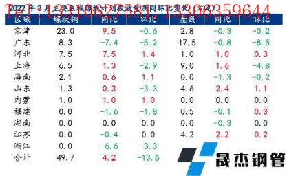 從投放區(qū)域來看,3月東北無縫厚壁鋼管廠家螺紋主要投放華北、盤線主要投放華東,區(qū)域選擇較以往變化不大;螺紋對華北、華南、華東的投放量分別為30.5萬噸、10.萬噸和7.8萬噸,盤線對華東、華南、華北的投放量分別為22.3萬噸、17.5萬噸和3.8萬噸。