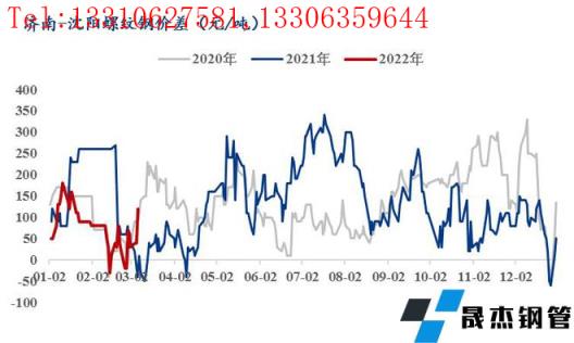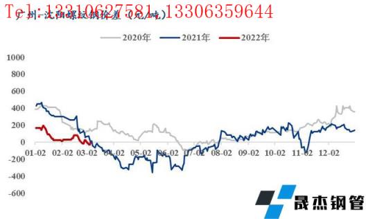 2月螺紋北京-沈陽月均價差+42元/噸,廣州-沈陽月均價差+33元/噸,上海-沈陽月均價差-89元/噸,濟南-沈陽月均價差+40元/噸。雖然本地尚未全面啟動,但本地無縫厚壁鋼管廠家跟漲節(jié)奏較快,帶動市場報價整體上漲,即東北價格繼續(xù)處在較高水平,南北無合適的價差已經(jīng)成為常態(tài)。
