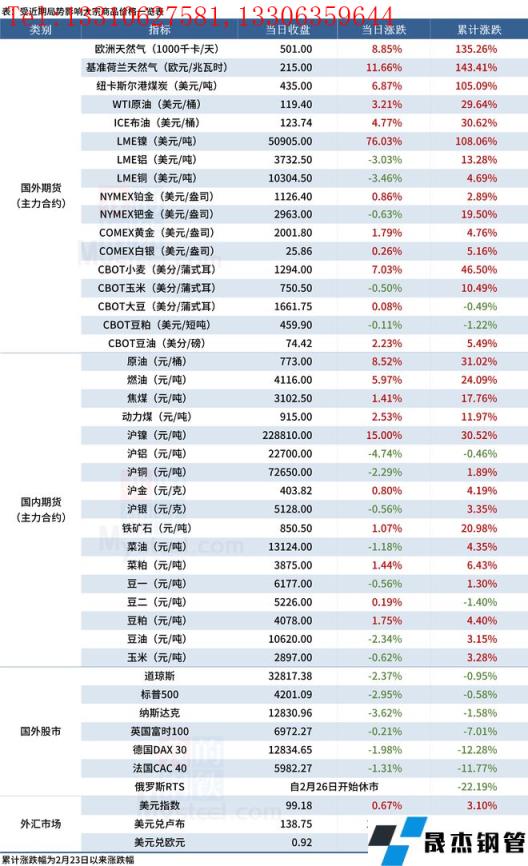 免責聲明:本網站(山東武鞍無縫鋼管廠www.97ks.net)刊載的“受近期局勢影響大宗商品價格一覽表(3月7日)”等均源于網絡,版權歸原作者所有,且僅代表原作者觀點,本文所載信息僅供參考。轉載僅為學習與交流之目的,如無意中侵犯您的合法權益,請及時聯系刪除。本網站刊登此篇文章并不意味著本站贊同其觀點或證實其內容的真實性,我們不對其科學性、嚴肅性等作任何形式的保證。如果侵犯了您的版權,請盡快聯系我們予以撤銷,謝謝合作!