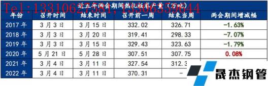 從產(chǎn)量來看,近五年兩會期間熱軋板卷產(chǎn)量除2020年基本持平之外,其余年份均有所下降,其中2018年的降幅較大,達到了7.07%;2021年的降幅也達到了4.86%;而2017年與2019年產(chǎn)量跌幅較緩,分別為1.63%和1.79%。