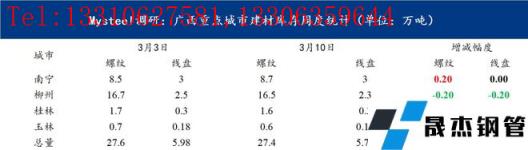 本周廣西地區建筑厚壁無縫鋼管社會庫存去庫速度偏慢,商家出貨一般。周初期貨高位運行,現貨價格漲幅80元/噸,市場心態得以提振,看漲情緒較高,市場交投尚可。周三開始期貨下跌導致市場情緒面偏悲觀,區域內部分無縫厚壁鋼管廠家出廠價及貿易商成交價均有不同程度走低,部分資源暗降優惠力度加大。由于期貨的持續下行,部分分銷商心態并不穩定,為加速出貨,市場底部價格有所下滑,隨著價格高位回落,市場交投成交量明顯減弱,出貨以終端剛需為主。從區域來看,柳州本部供給整體偏緊,商家每日分貨量較少,線盤資源一直處于缺貨狀態,使得整個社會庫存總量整體偏低。截至目前,廣西市場庫存建筑厚壁無縫鋼管33.16萬噸,較上周相比減少0.42萬噸。