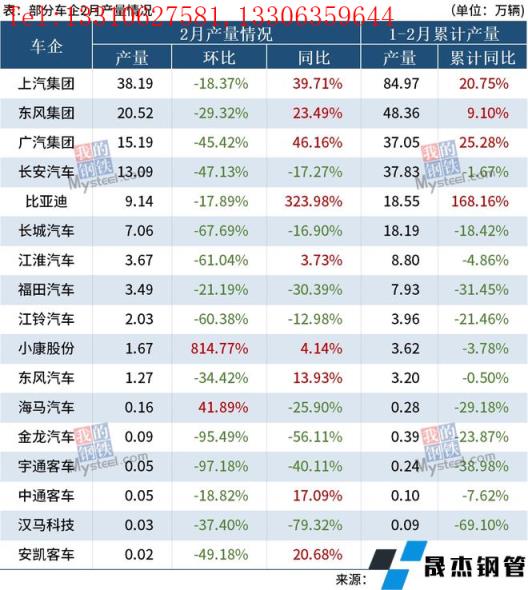 免責聲明:本網站(山東武鞍無縫鋼管廠www.97ks.net)刊載的“2月上市車企產銷量出爐,排名前三位產量同比大增”等均源于網絡,版權歸原作者所有,且僅代表原作者觀點,本文所載信息僅供參考。轉載僅為學習與交流之目的,如無意中侵犯您的合法權益,請及時聯系刪除。本網站刊登此篇文章并不意味著本站贊同其觀點或證實其內容的真實性,我們不對其科學性、嚴肅性等作任何形式的保證。如果侵犯了您的版權,請盡快聯系我們予以撤銷,謝謝合作!
