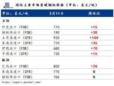 目前中國方坯與海外方坯價差較大,進口成交困難,部分貿(mào)易商進行出口操作。了解到,中國方坯出口報價在790-800美元/噸CFR東南亞,此外,市場傳聞部分貿(mào)易商轉(zhuǎn)售進口至中國的方坯。從菲律賓貿(mào)易商處了解到,本周接到中國資源報價,但中國方坯規(guī)格在菲律賓市場需求不大,因此買家興趣較小。
