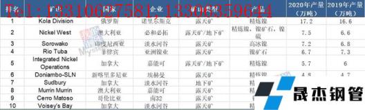 以上為全球十大鎳生產商排名,2020 年全球鎳產量總計約 220 萬噸。詳情請點擊》》