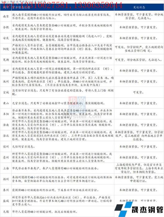目前,鋼晨庫(馬鞍山鋼晨鋼鐵物流園有限公司)資源基本可以正常提貨、發貨,且日發貨量基本恢復,目前倉庫現有厚壁無縫鋼管庫存20萬噸左右,涉及建筑厚壁無縫鋼管、熱軋板卷、冷軋板卷、型鋼,今日累計發貨量基本達到7000噸。據了解,目前倉庫依舊在整合貨運資源,并要求汽運司機每日核酸檢測,以達到發貨正常。長江鋼鐵廠發汽運資源暫未恢復,火車運輸正常發貨,后續情況會持續關注。