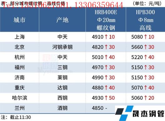 ◎福州:17日早盤建材市場價格漲30,現(xiàn)線三鋼5150三寶5130,螺三鋼4970三寶4940大東海4940吳鐵4930,盤三鋼5240三寶5230。(單位:元/噸)