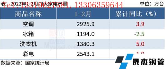 免責聲明:本網站(山東武鞍無縫鋼管廠www.97ks.net)刊載的“統計局:1-2月中國四大家電產量3增1降”等均源于網絡,版權歸原作者所有,且僅代表原作者觀點,本文所載信息僅供參考。轉載僅為學習與交流之目的,如無意中侵犯您的合法權益,請及時聯系刪除。本網站刊登此篇文章并不意味著本站贊同其觀點或證實其內容的真實性,我們不對其科學性、嚴肅性等作任何形式的保證。如果侵犯了您的版權,請盡快聯系我們予以撤銷,謝謝合作!