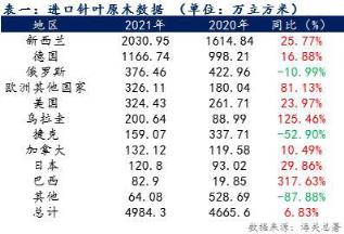 引言:我國原木進口多年來保持正增長,在2020年的4665.6萬立方米基數(shù)下,2021年進口針葉原木同比增加仍舊達6.83個點 ,現(xiàn)國際形勢波動,在保整內需情況下預計進口格局將有調整。