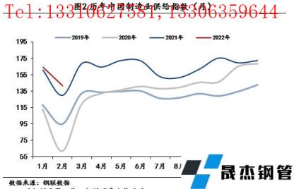 鋼鐵是終端制造業的重要生產原材料,以鋼鐵消費趨勢為觀測視角可以較為準確的判斷下游制造業發展狀況。2月鋼鐵業供給指數為146.92,同比下降5.26,環比下降2.86%。北方地區在采暖季和冬奧會環保影響下,厚壁無縫鋼管產量管控依然嚴格。據統計,2月全國粗鋼產量6738.5萬噸,日均產量240.66萬噸,環比減少9.79萬噸,降幅3.91%,同比下降13.86%。消費方面,五大品種厚壁無縫鋼管消費環比下降19.63%,同比下降4%。具體來看,房地產資金緊張雖有緩解,但受季節影響,用鋼量繼續下降,建筑厚壁無縫鋼管表觀消費量環比下降38%。制造業方面,受春節和疫情干擾因素影響,2月份,制造業企業復工復產較晚,實際用鋼消費下降,其中熱卷消費同比下降7.4%,環比下降8.2%。