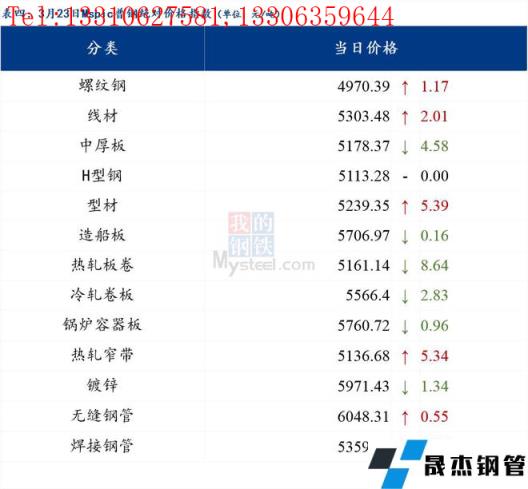 3月23日普鋼絕對價格指數變化:綜合指數5226.68,下跌0.77;螺紋鋼指數4970.39,上漲1.17;線材指數5303.48,上漲2.01;熱軋板卷指數5161.14,下跌8.64;冷軋板卷指數5566.4,下跌2.83;中厚板指數5178.37,下跌4.58。